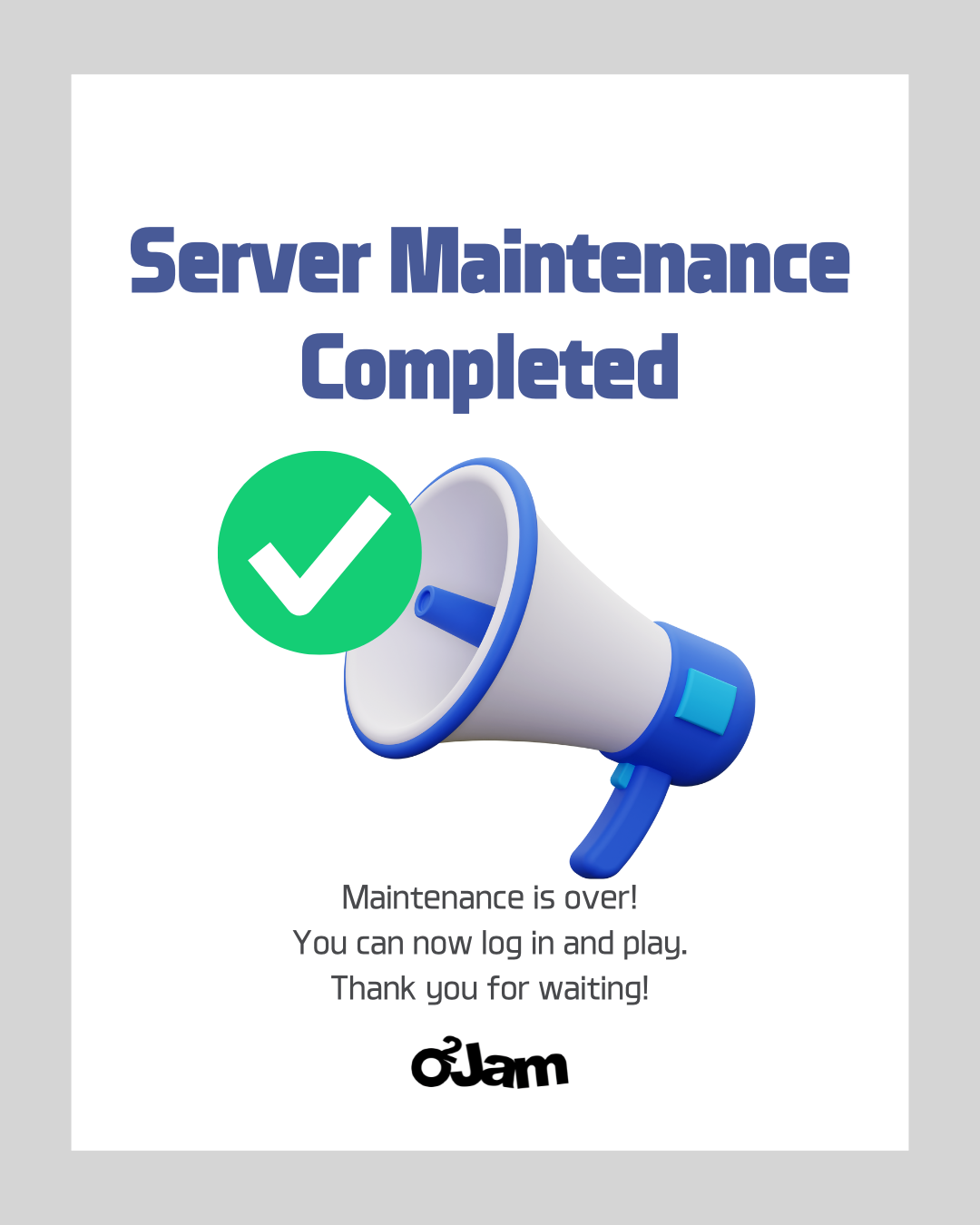 Thank you to all O2Jammers for your patience during the scheduled maintenance. We hope you enjoy your time in the improved gaming environment.