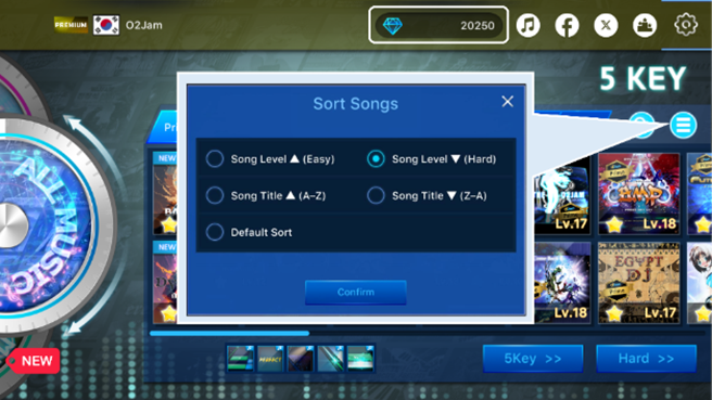You can now sort the song list by level or title, allowing you to find the tracks you want more quickly and easily.